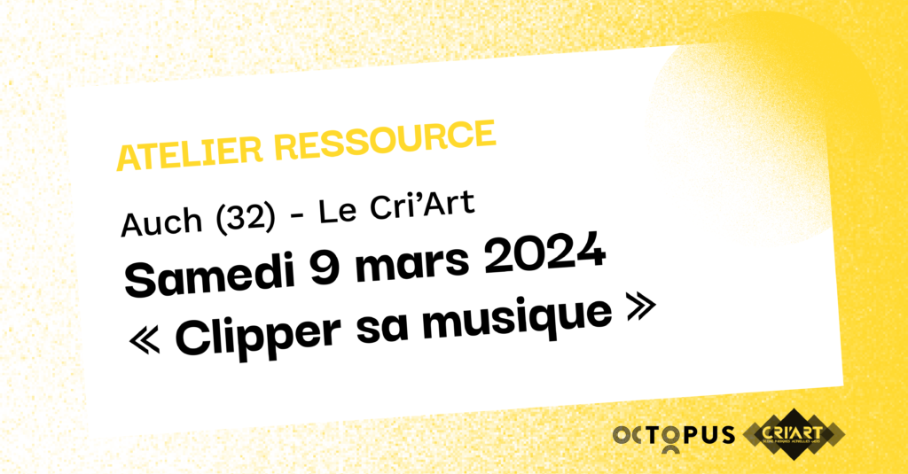Le Cri’Art et Octopus vous invitent à l’atelier « CLIPPER SA MUSIQUE » le samedi 09 mars 2024 de 14h à 16h.